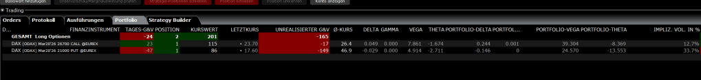 Ich hatte einen Iron Condor zu intensiv gepflegt. Das kostete viel Geld. Wirklich erfolgreich wurden dagegen die Diagonals, insbesondere bei den DBK-Optionen.