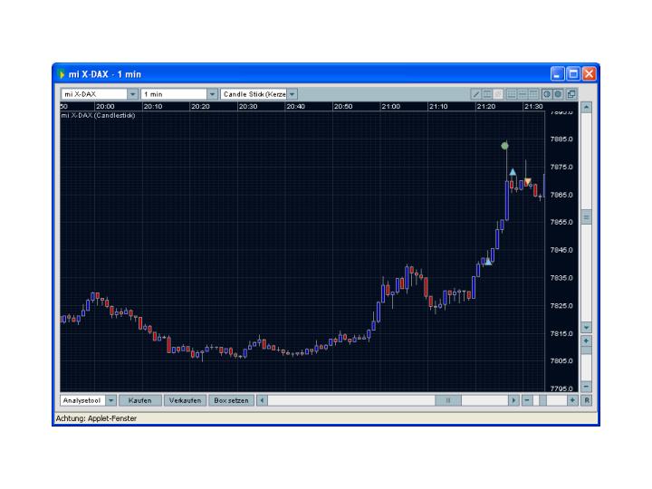 Es ist zwar inzwischen ein marginaler Bereich meiner Strategie aber manchmal kann mich nicht beherrschen und mache Intradaytrading. So wie heute. Mir war es bereits kurz nach 20:00 Uhr, dass das Tageshoch noch heute fallen wird. Deshalb beobachtete ich den Kurs nach 21:00 Uhr besonders aufmerksam. Um 21:22 Uhr fiel der Startschuss für ein paar Kontrakte ( CFD abn amro), Kauf zu 7842,08. Danach beschäftigte ich mich mit anderen spannenderen Dingern. Dabei habe ich völlig außer acht gelassen, dass ich auch eine Take Profit erzeugt habe. Vier Minuten später war es um diese Order geschehen. Der Kurs stieg um über 40 Punkte und meine Position wurde mit 40 Punkten Gewinn glatt gestellt. OK, durch eigene Gier habe ich gleich in den letzten Handelsminuten11 Punkte abgegeben aber immerhin mit stolzen 29 Punkten mal 4 Kontrakte kann ich mir morgen etwas gönnen. .. 🙂