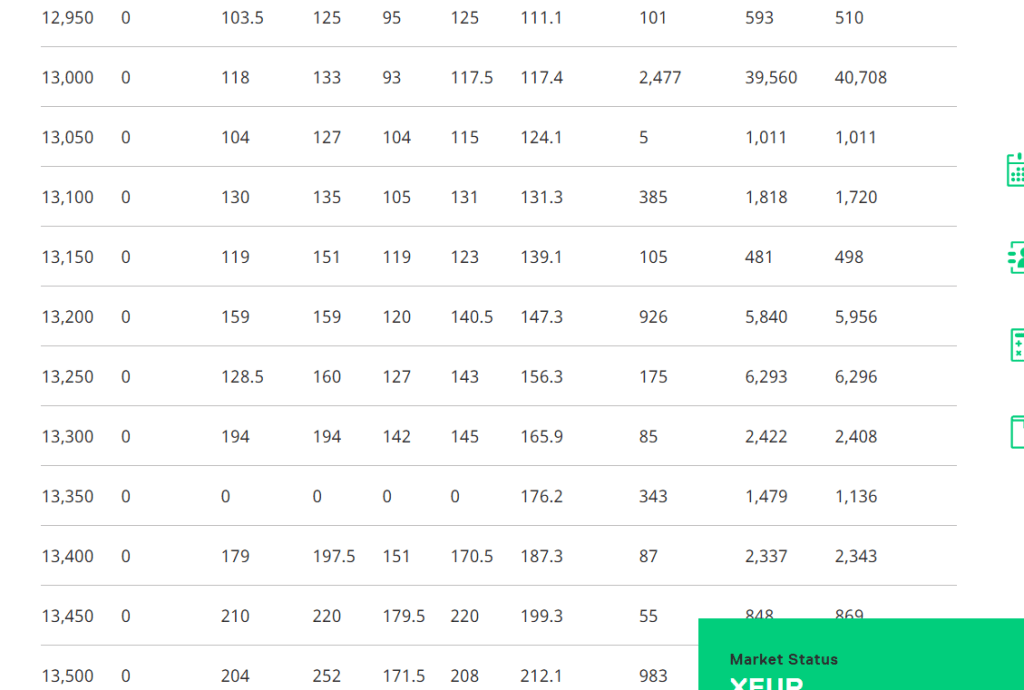 Außerdem liegen viele offene Put-Positionen nicht weit aus dem Geld. Ich kann es mir nur dadurch erklären, dass die Initiatoren Stillhalter sind, die von der Fortsetzung der Rally ausgehen. Es befinden sich auch viele Positionen bei Strikes aus dem Geld. Hier wollte man sich womöglich absichern. Die Market Maker eröffneten natürlich Gegenpositionen.