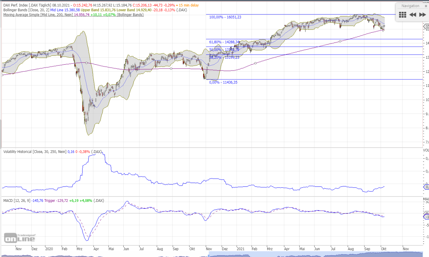 Es ist natürlich schwierig, in dieser Marktphase Geld zu verdienen. Denn nach kurzen Abgaben kommen steile mehrtägige Erholungen. Die Kursstürze sind also lediglich eine Kaufgelegenheit gewesen. Trotzdem steht der DAX 1000 Punkte unter dem Augusthoch.