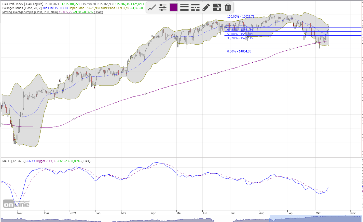 Kommt es also doch zu der Jahresendrally? Sollte der Index am Montag nicht wieder drehen, dann stehen die16000 auf der Agenda. Dann wird erst entschieden, wobei wenn der DAX bis dahin gekommen ist, muss mit der Fortsetzung gerechnet werden…