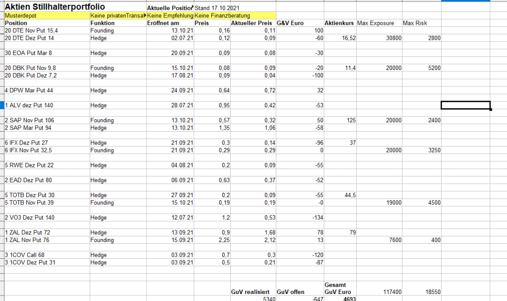 Unten das Gesamtergebnis und eine Aufstellung der Stillhalterpositionen ohne DAX-Indexoptionen. Die Letzteren werden im Rahmen der Black Swan Strategie gehandelt.