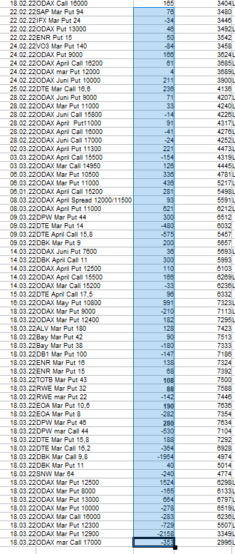Noch eine weitere Lesson Learnt ist mein Vorgehen am Verfallstag. Darüber werde ich demnächst ein Webinar anbieten. Denn viele angehende Optionshändler vertrauen diversen Seminaranbietern und stellen ihre Stillhalterpositionen 7-10 Handelstage vor dem Verfall glatt. Das ist natürlich ein Quatsch. Hätte ich es getan, dann würde ich ca. 2000 Euro Verlust realisiert. Ich beendete die Positionen zum Teil 10 Minuten vor Handelsende am Freitag. Auch das war zum Teil zu früh.