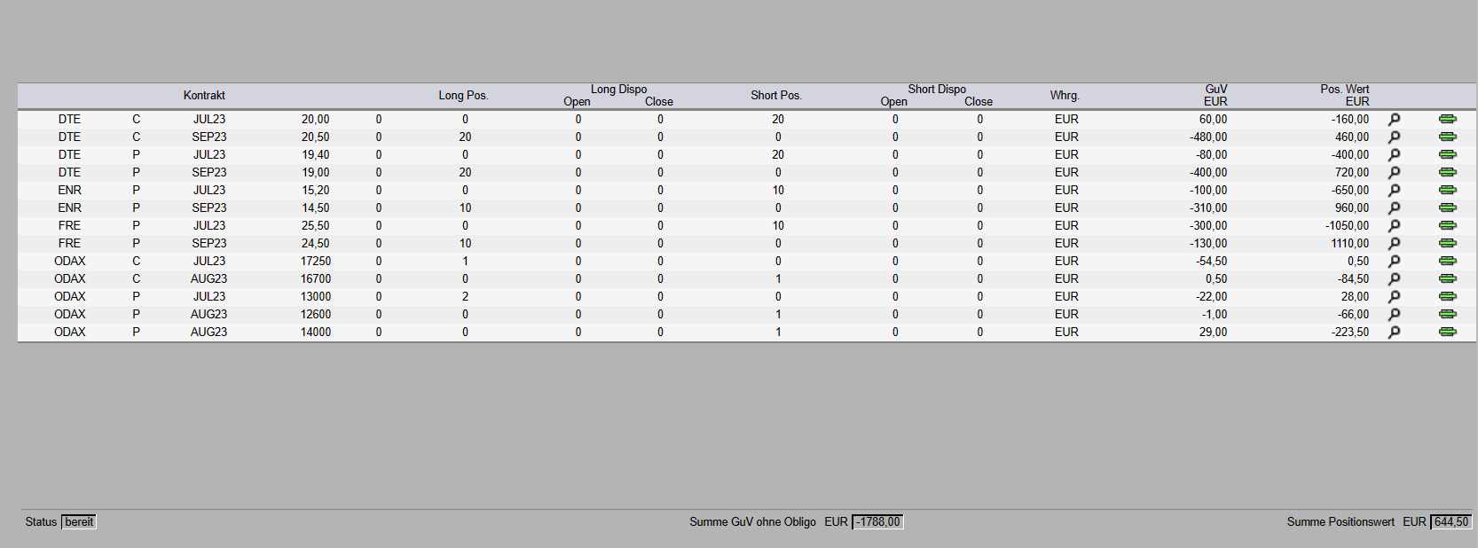 Seit dem Verfall habe ich ca. 1000 Euro an P&L durch Rollen realisiert. Gestern z. B. liquidierte ich die ODAX Julis und rollte sie auf den August.