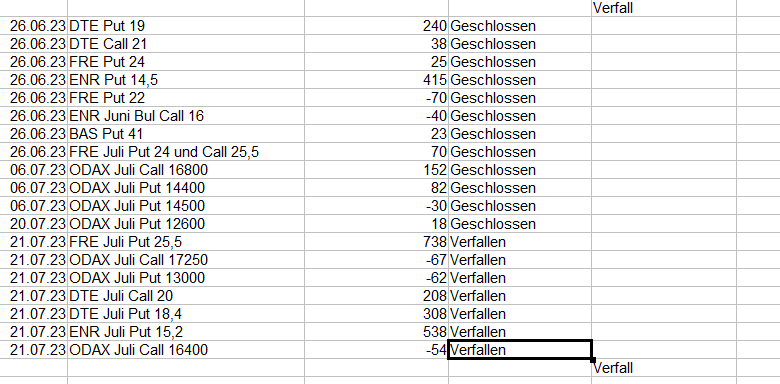 Die Deutsche Telekom lief auch insgesamt gut. Allerdings haben hier die Absicherungen viel nachgegeben. Das ist nicht schlimm, da ich noch viel Prämie für den August schreiben kann.