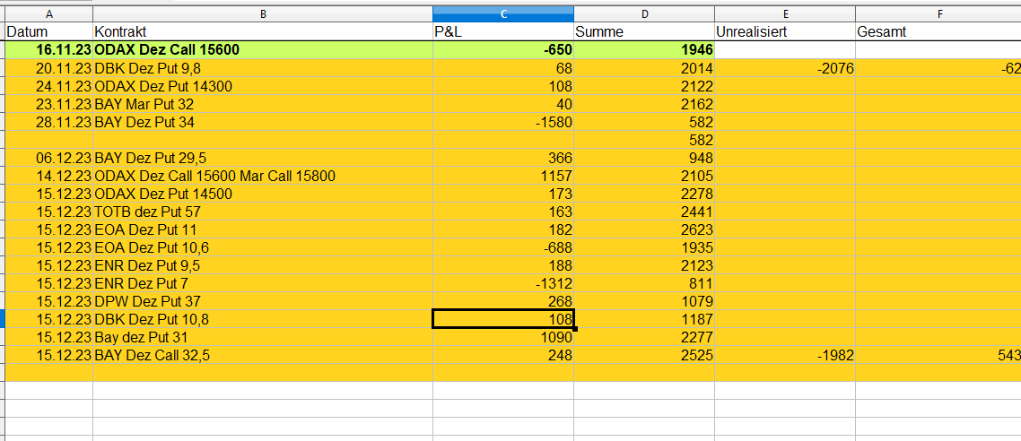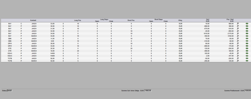 Weitere Pläne zum Jahresende habe ich nicht. Alle Positionen sind ausgeglichen, sprich das Delta ist klein. Niemand weiß, was nach der ersten Januarwoche passieren wird.