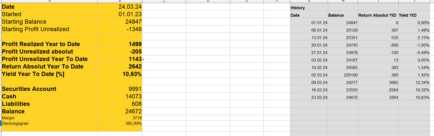Mein aktuelles Depot hat sich recht gut entwickelt, aber ohne große Sprünge. Ich halte zurzeit nur noch Iron Condors in DAX – Optionen. Die sind alle per Definition abgesichert. Auf einem anderen Hedge-Konto halte ich noch mehr Puts mit der Laufzeit Juni 2024.