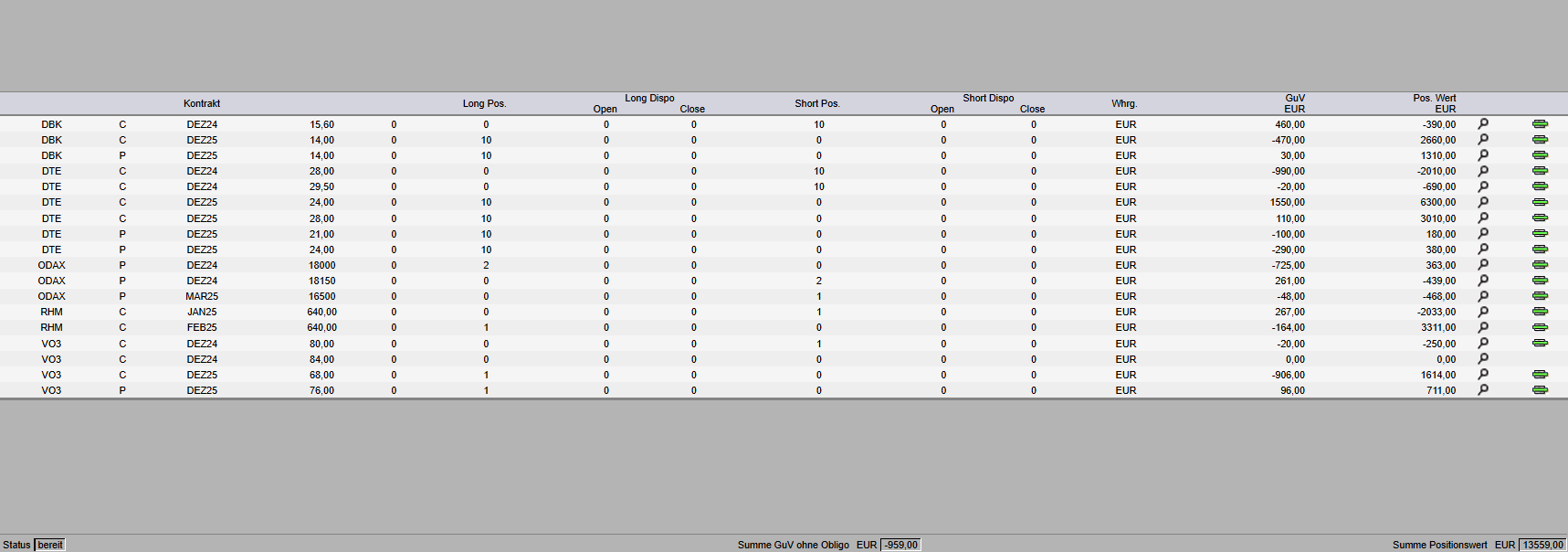 ODAX – das ist kein Covered Calls. Ich halte einen Put-Bull-Spread und einen März – Put abgesichert durch einen Dezember Put 17000 (nicht sichtbar weil in einem anderen Depot).