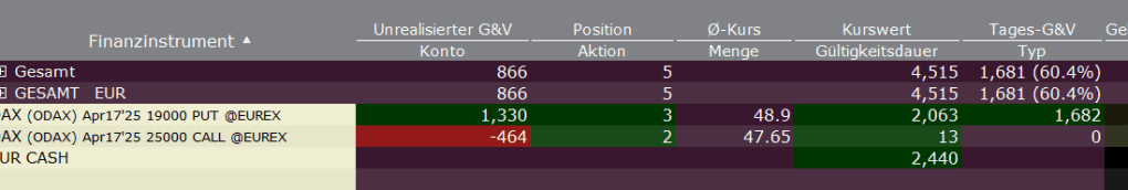| 03.04.25 | ODAX Juni Put 18800 | -165 | 1073,5 |