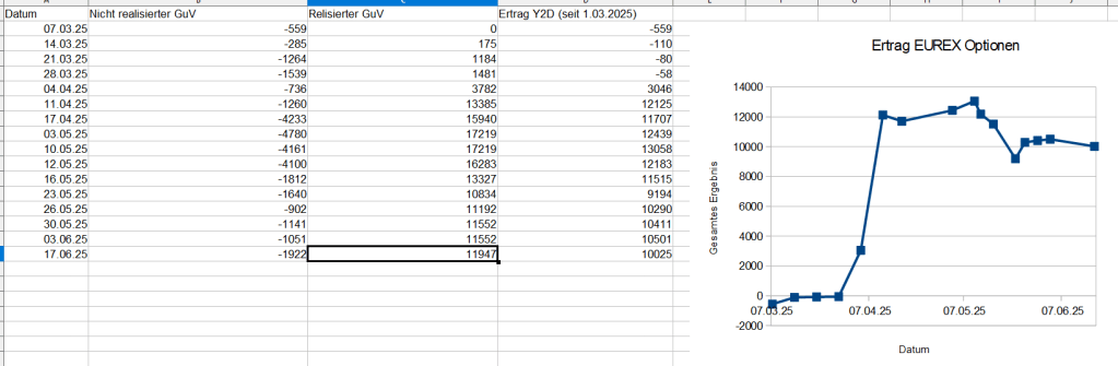 Die Diskussion kann man sich jedoch ersparen. Ich bin der Meinung, ein Optionshändler kauf auch mal Puts. Dafür ist jetzt das richtige Marktumfeld. Das ganze Geschäft muss sich natürlich lohnen. Und so sind wir bei meinem Depot.