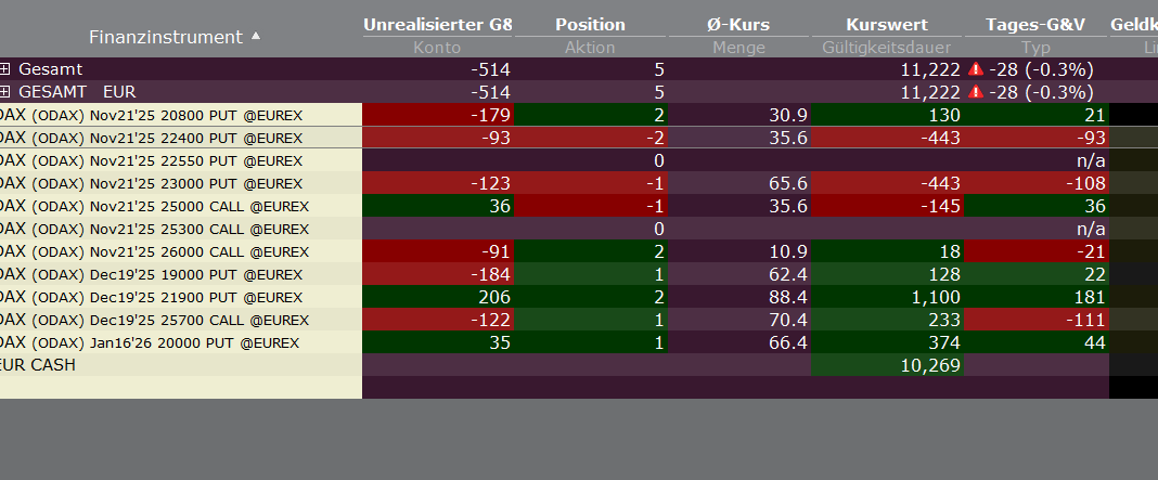 | 31.10.25 | ODAX kauf close Nov Put 22550 | 307 | 14234 |