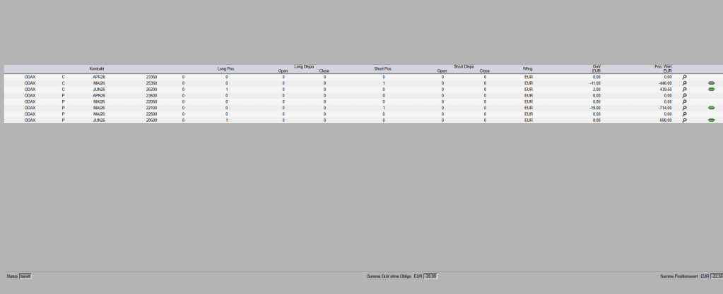 Zwar halte ich noch einen langen Call im Mai und einen kurzen im April. Es ist eher ein Rettungsversuch. Die eigentliche Strategie ist deltaneutral und so soll es auch bleiben.