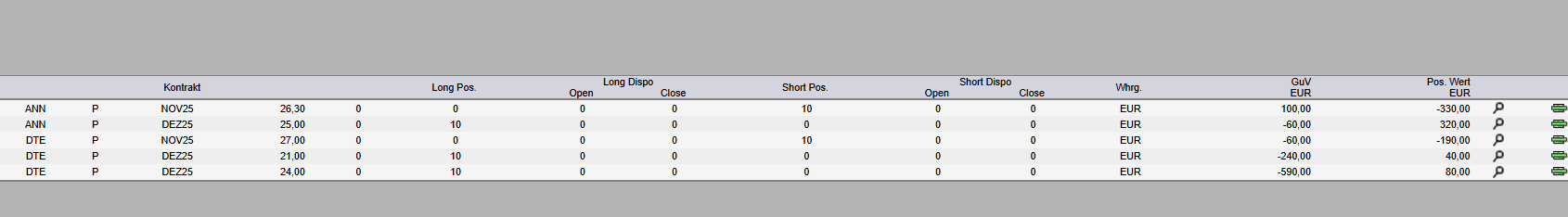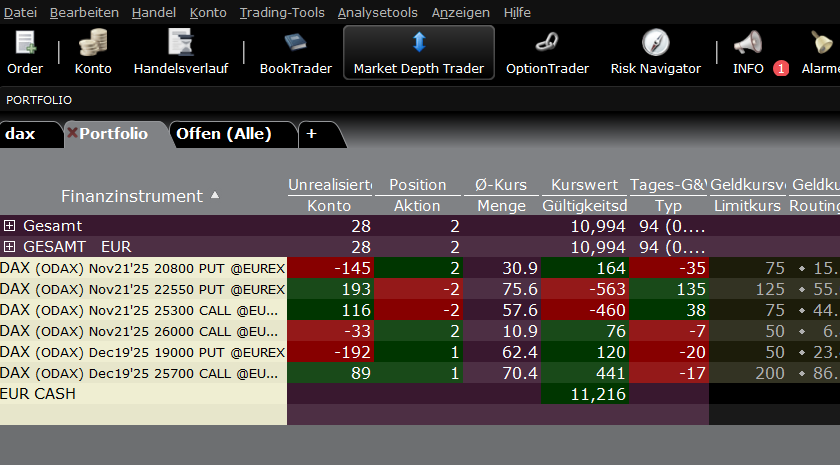 | 20.10.25 | ODAX Kauf close Nov Call 25400 | -143 | 13745 |