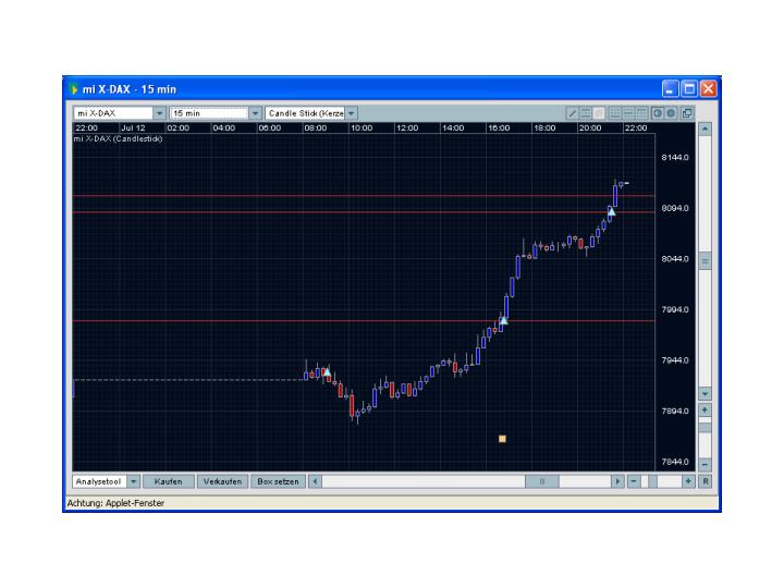 Ja, es war heute einer der Tage, für welche ich es antue, mir und meiner Familie. An einem solchen Tag wachen die alten Träume von finanzieller Unabhängigkeit wieder auf. Das Leiden der letzten Woche gehört endgültig der Vergangenheit. Heute lief alles richtig. Ich setzte bereits bei 7925 auf steigende Kurse. Danach vergrößerte ich die Position noch zwei Mal. Effektiv nahm ich über 400 Punkte mit, bzw. sicherte per Stopp Loss.