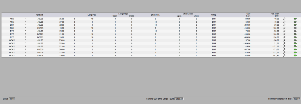 Unten findet Ihr wie immer wöchentlich die Depotauszüge mit meinen Optionspositionen.