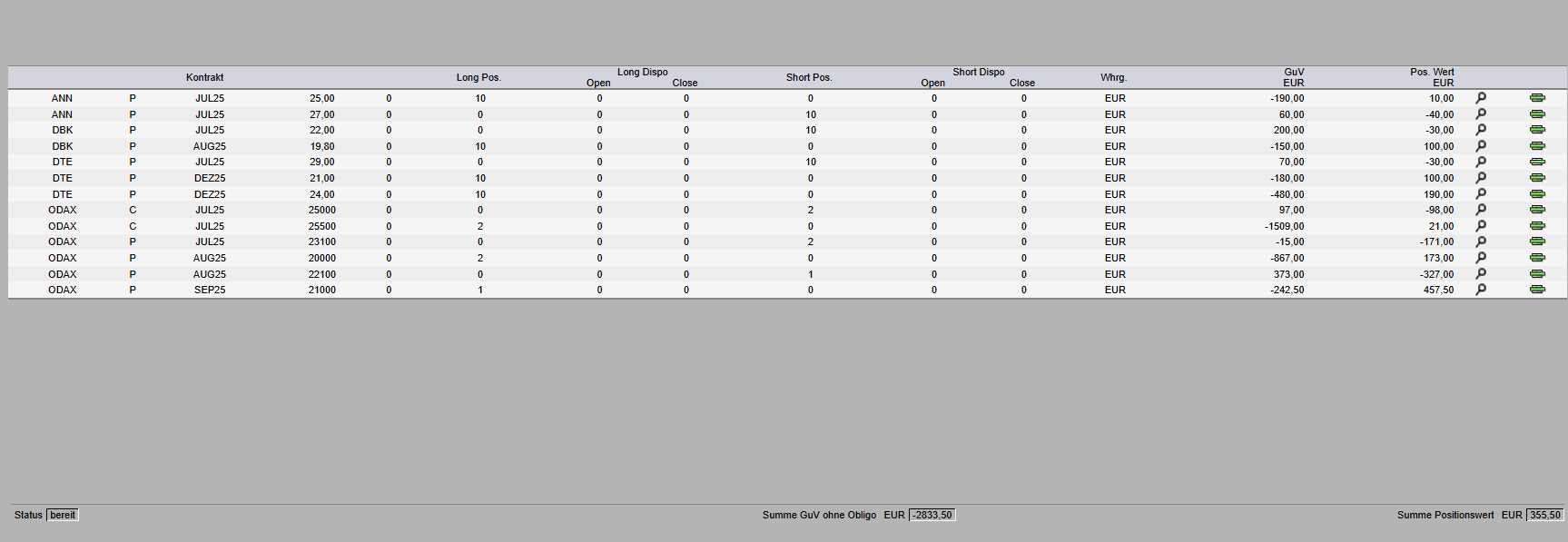 Unten findet Ihr wie immer wöchentlich die Depotauszüge mit meinen Optionspositionen.