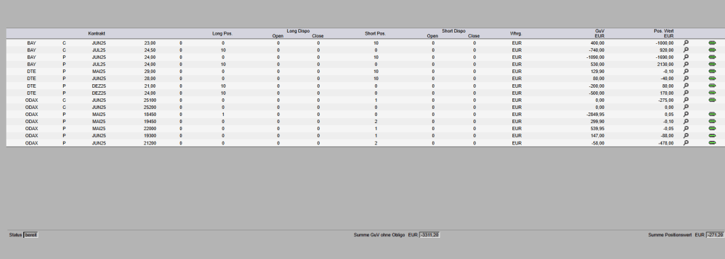 Für die kommende Periode halte ich erstmals eine überschaubare Position. Ich werde vorerst nichts tun, es sei denn, der DAX fällt stark. Dann kommt natürlich das Rollen.